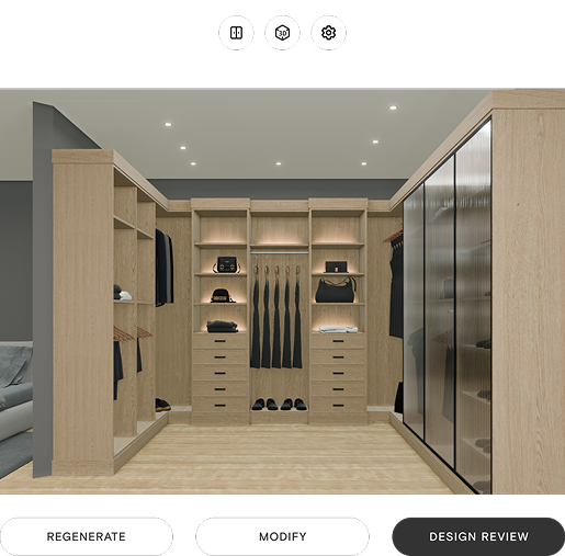 A built-in design assistant that delivers designer-level outcomes: confident onboarding, layout logic, finish styling, and install-ready outputs—without manual intervention.